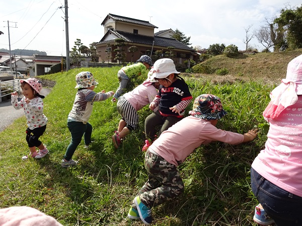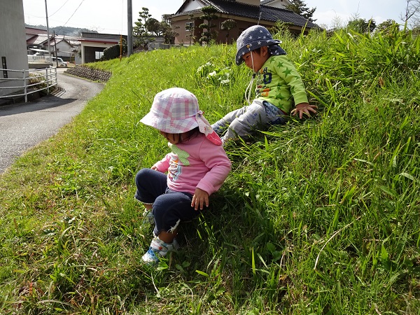 小高い斜面を見つけ、登らずにはいられないりんご組さん!