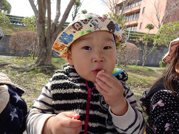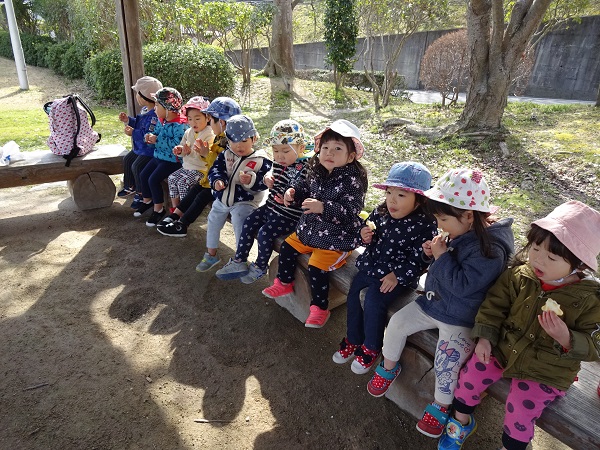 公園に到着したら、朝の歌をみんなで歌ってから、おやつタイム⏰