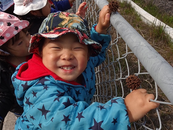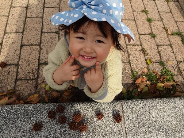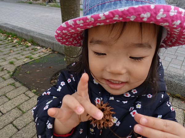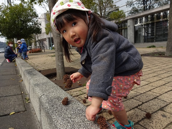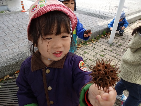 「ちくちくいっぱ~い!!」と楓の実をたくさん集め・・・