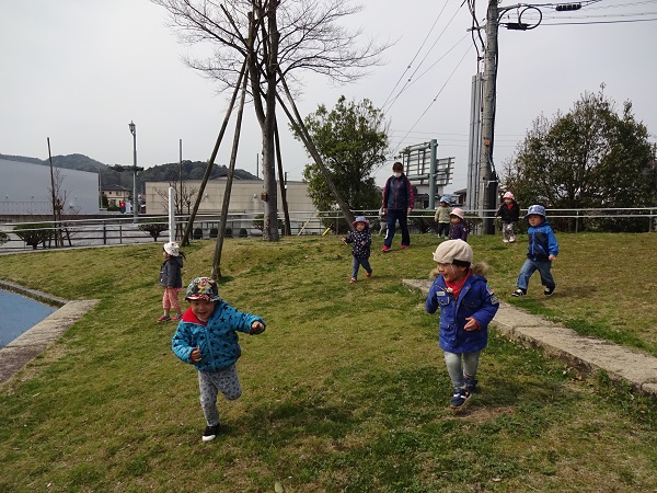 一年間、色々な場所へお散歩に行き楽しんできましたが、今日がりんご組で行く最後のお散歩です。