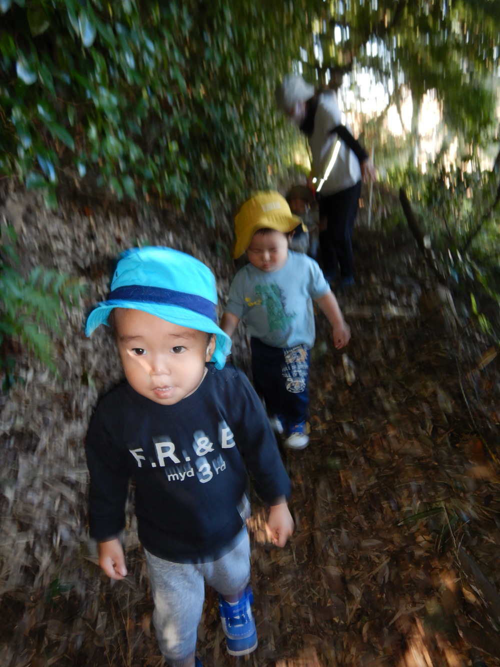 慣れない山道・・・凸凹道に時々尻もちをつきながらも、がんばって一歩一歩、しっかりあるくことができました!!