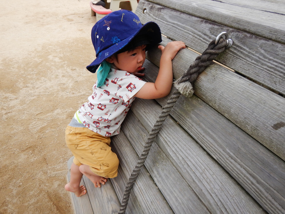かくれんぼの後は、三角屋根の遊具で遊びました。