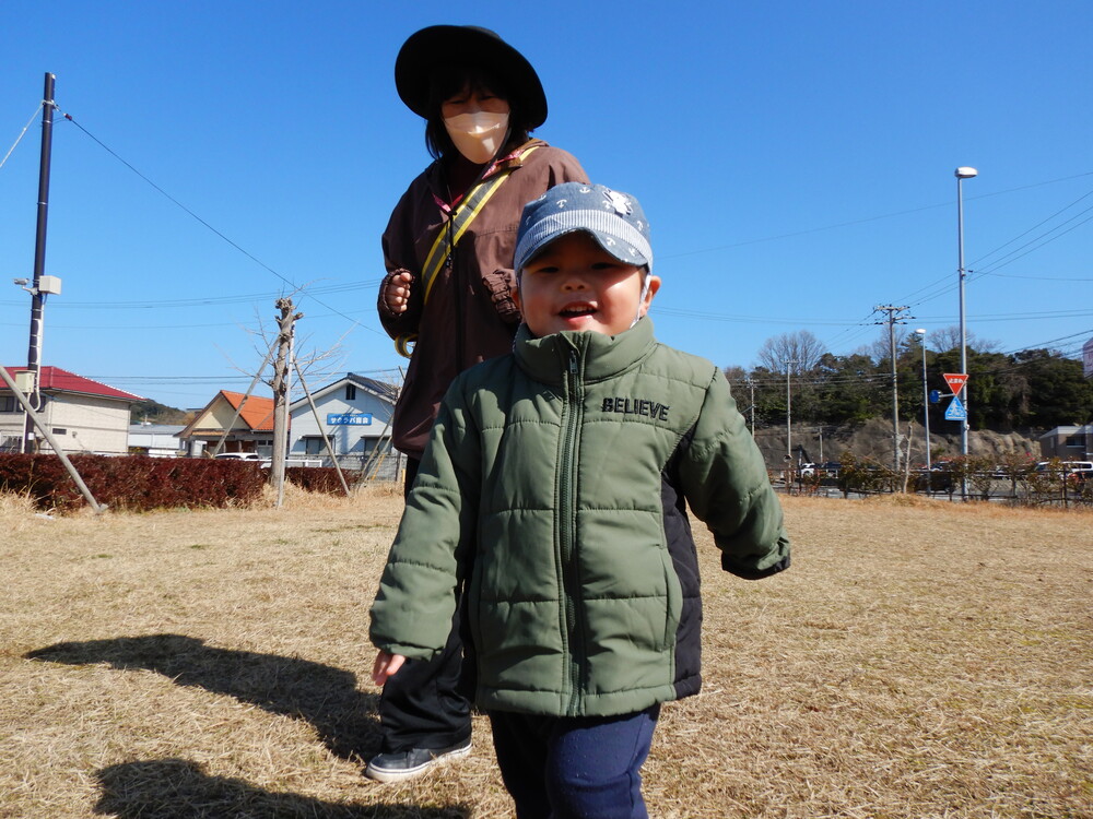 青空の中たくさん体を動かして遊びました。明日もお散歩に出かけようね!