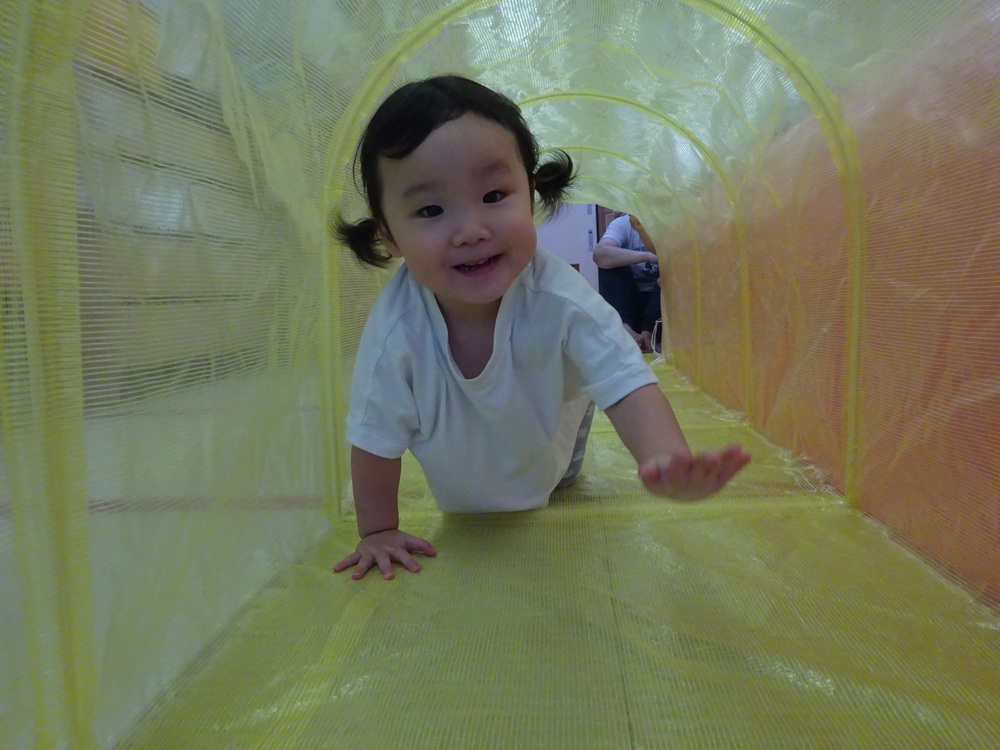 久しぶりにトンネルを出してみると、りんご組さんのハイハイのスピードにビックリ!!