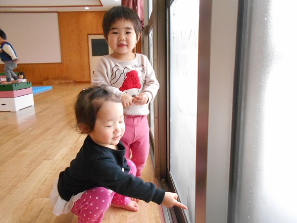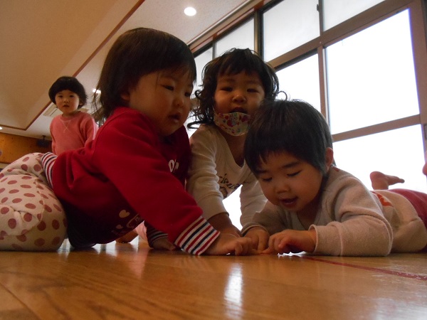 「あ!○○ちゃんのシールと一緒だ!!」と床に貼ってあるシールを見つけたりと、