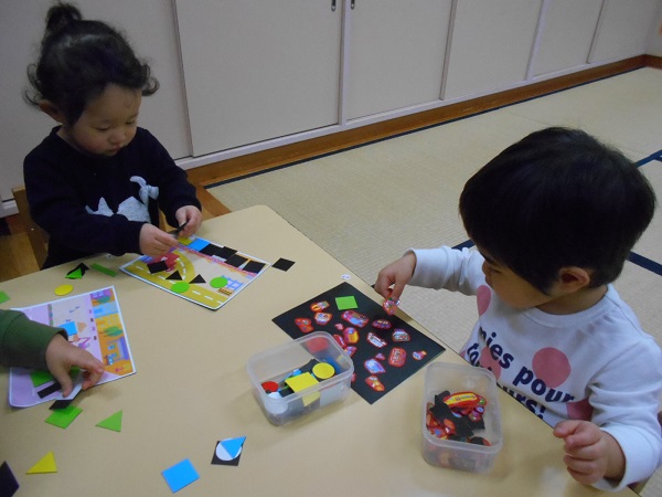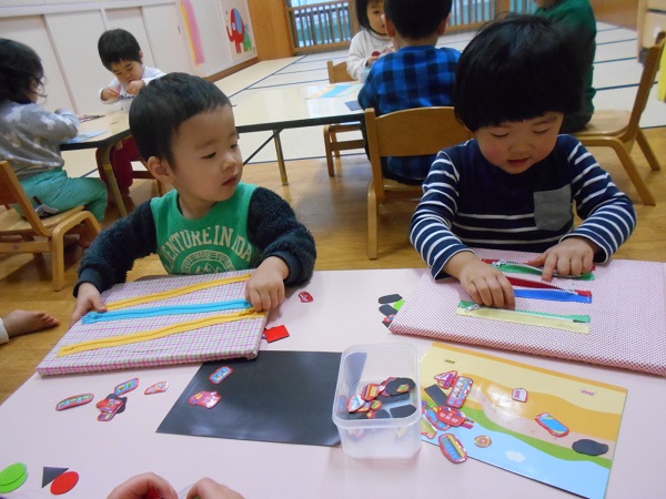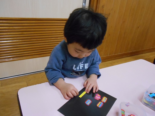 今日は、マグネットとファスナーの手作りおもちゃで遊びました♪