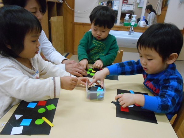 「くっつくんだよ」「ファスナー開けられるかな?」とお話を聞いている時から、興味津々のりんご組さん!