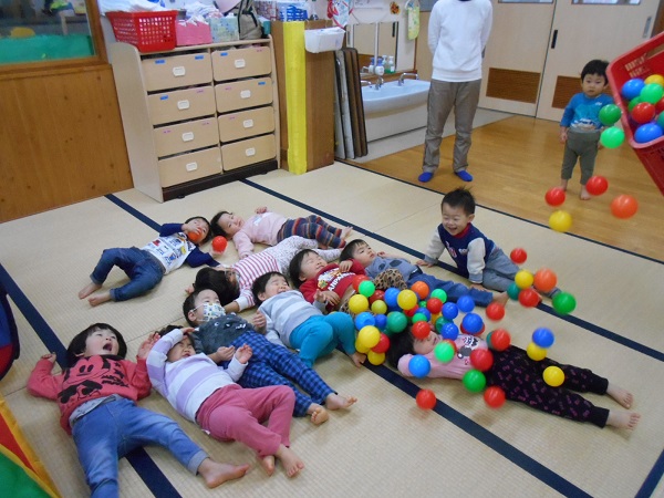 大好きなボールシャワーをすると、「キャー♡」と大喜びでした。