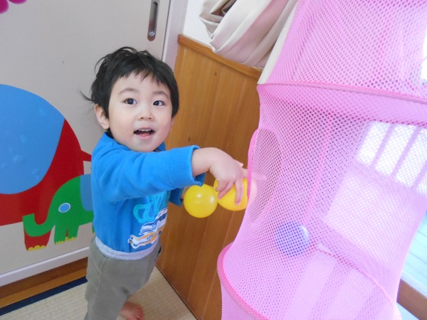 今日はお部屋でボール遊び♬