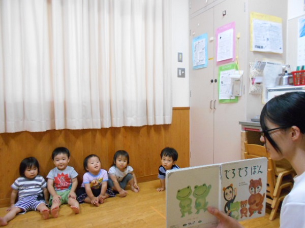 お昼寝の前は・・・みんな大好きな絵本を見ます♪