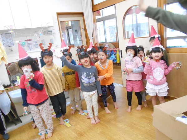 緊張気味のりんご組さんでしたが、大好きなサンタさん&トナカイさんが来てくれて嬉しそうでした!