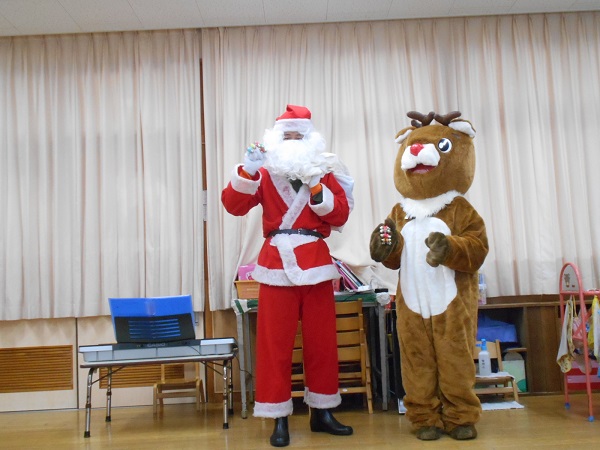 クリスマス会では、サンタさんとトナカイさんが登場!!