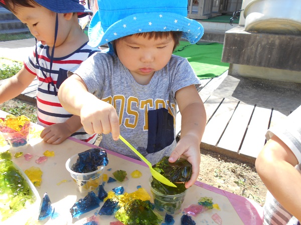 不思議なゼリーの感触を、夢中になって楽しむりんご組さんなのでした■■■