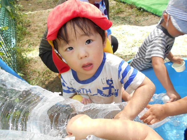 ウォータースライダーを使った遊びで夏らしい遊びができました!