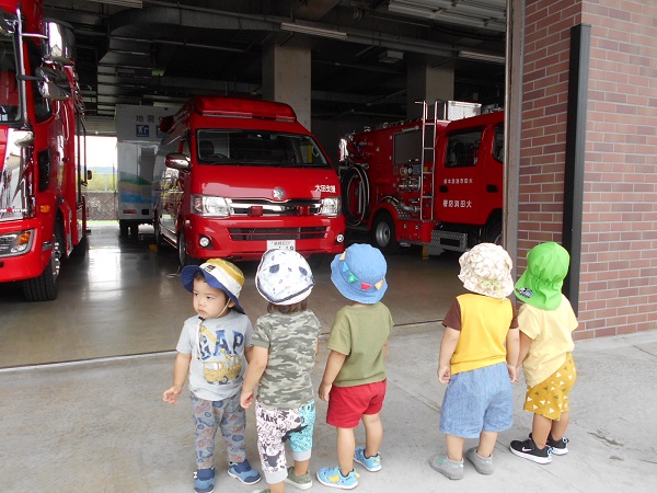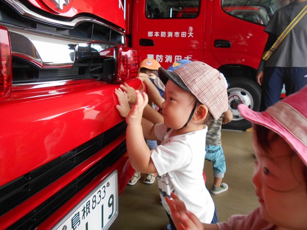 かっこいい消防車がたくさん見られ、ご機嫌のりんご組さんなのでした♪