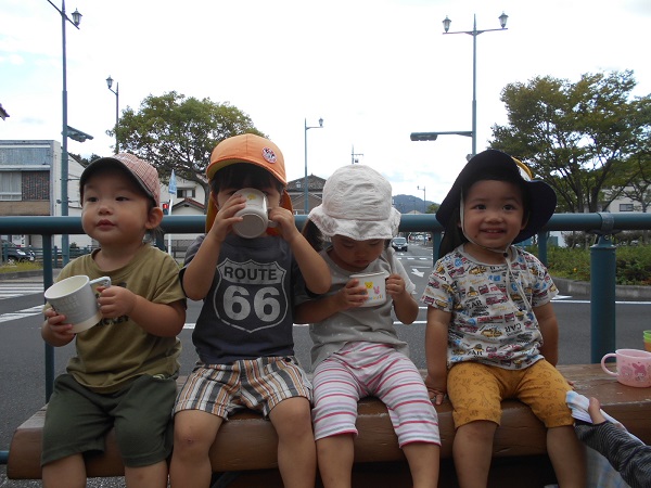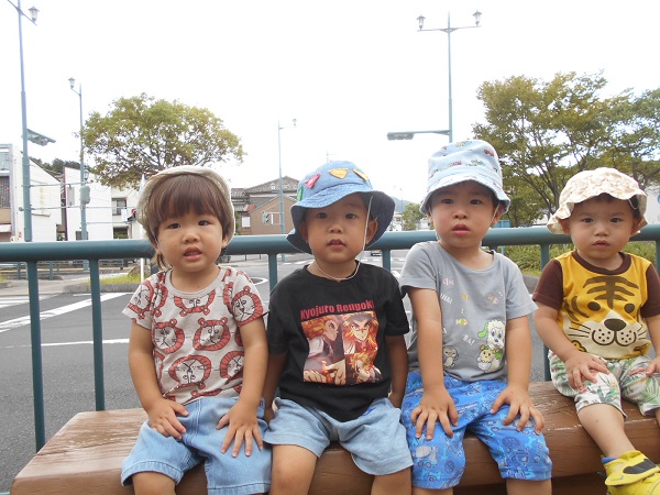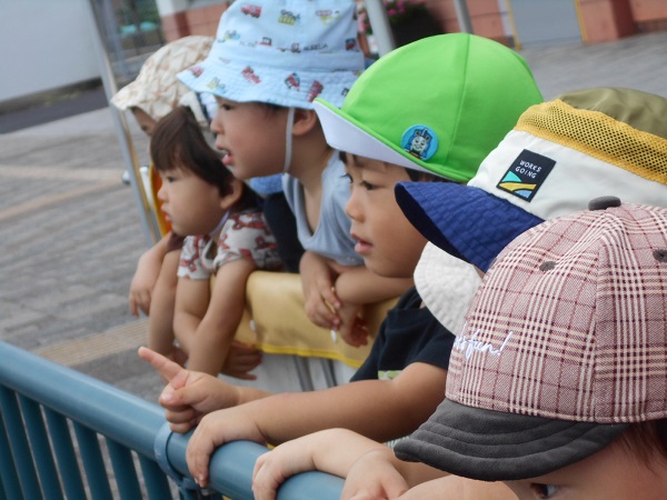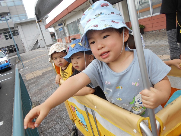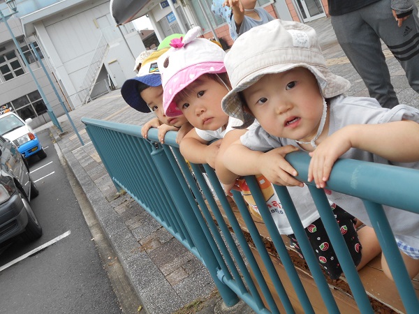 汽車は見られなかったのですが、たくさんバスが通る様子を見ることができて嬉しそうなりんご組さん!