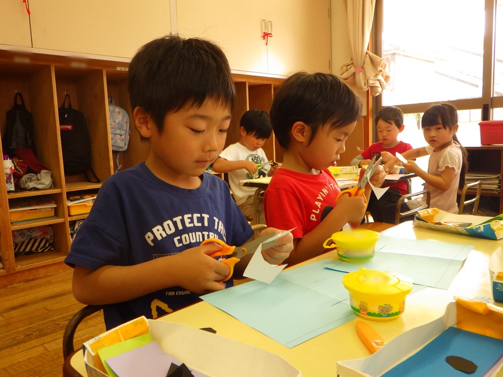 画用紙を細く切って、こいのぼりのように風になびかせているお友だちも♡