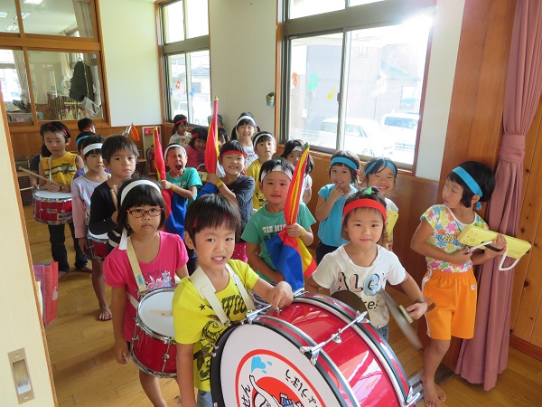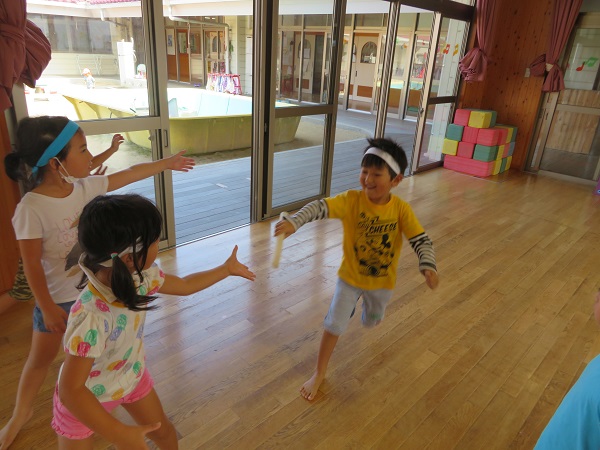 2018年10月09日 にっこにこ!3連休で楽しかったことがたくさんあったのか、「先生あのねー」とお話が弾んだろけっと組さん。お話や園庭遊びを楽しんだ後は運動会の練習です。運動会を今週末に控え、気合がみなぎります✨なんと言っても一番盛り上がるのは『リレー』です。はじめて白組が優勝!わぁ!と歓声があがりました。8月末から取り組んでいる『マーチング』も息が合ってきました。元気に本番が迎えられますように!