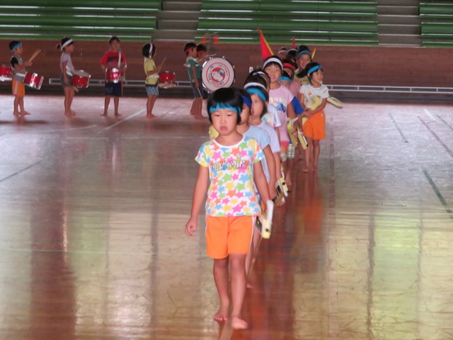 とっても広い総合体育館ですが、先頭のお友だちについてまっすぐ行進✨揃って歩く姿がとてもかっこいいですよ。