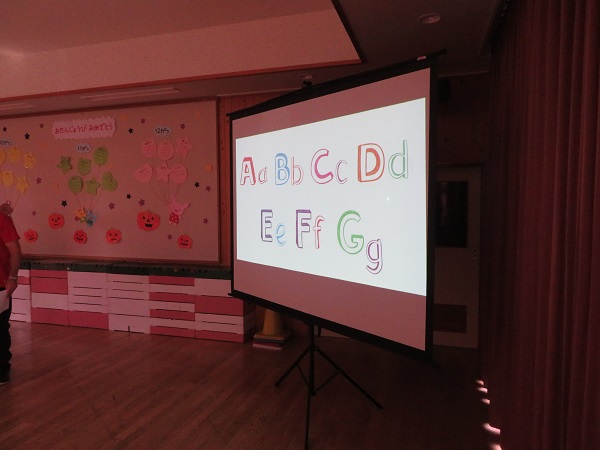 ABCの歌にあわせてスクリーンを見ながら歌います。