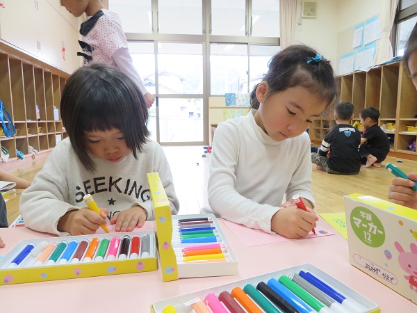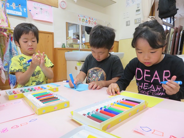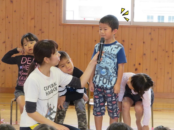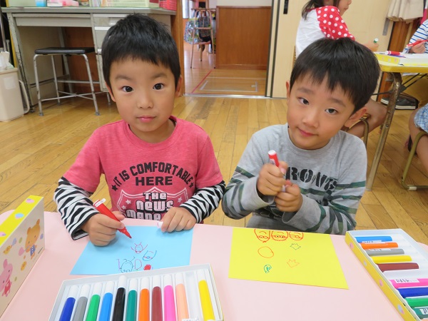 2018年10月23日 おたんじょうびおめでとう☆10月の誕生会■ちょっぴり恥ずかしがり屋な10月生まれのお友だち...照れながらも頑張ってインタビューに答えてくれましたよ。おたんじょうびおめでとう♡誕生会の後は...すまいるくらぶ♪で使うフラッグ作りのお手伝いをしてくれました■「赤ちゃんたちが使うんだって」「可愛い絵にしよ✐」自分たちが作った物を使ってくれる相手を想像しながら...とっても楽しそうに絵を描いていた子ども達です☺