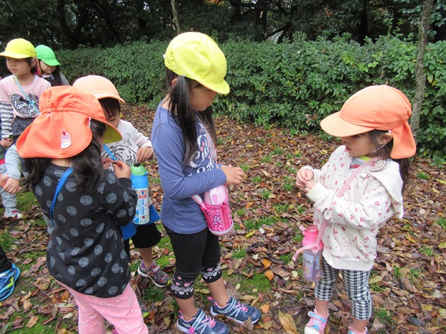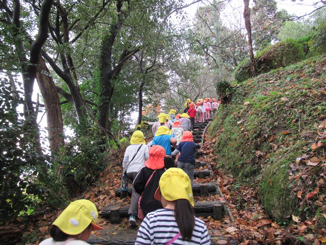 2018年12月04日 ずんずんと!ゲオの裏にある山を登りました。ずんずん歩きます。ずんずん・・・一番上まで登りきると、広場があります。そこで木の実を拾ったり、鬼ごっこをしたりして楽しみましたよ!また行こうね❤