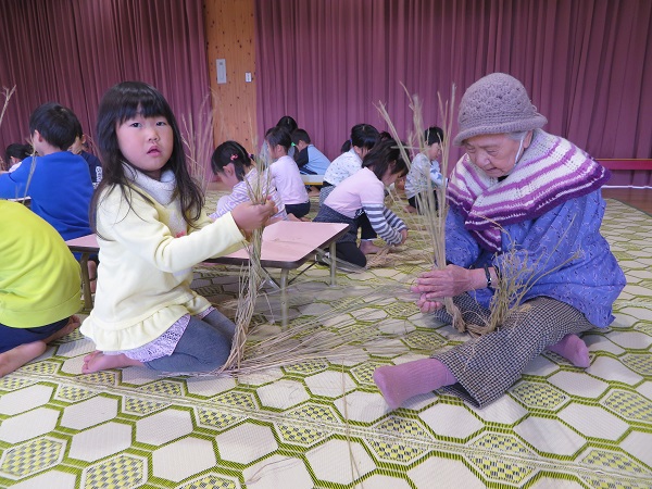 ケアハウスビラおおだの利用者さんと一緒に、しめ縄作りをしました。