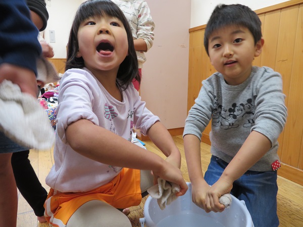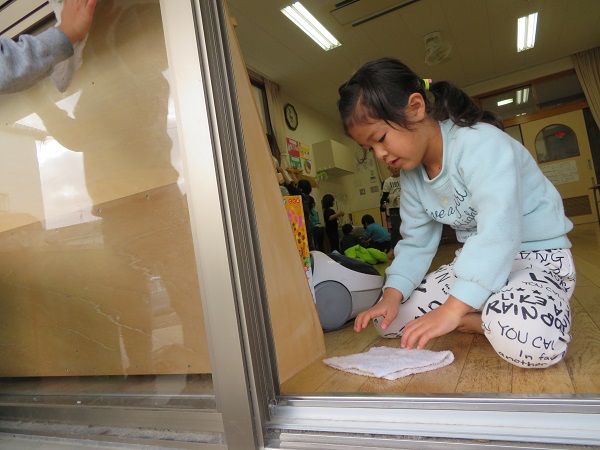 2018年12月27日 大掃除!今日はみんなで大掃除!いい気持ちで新年が迎えられるようにと、気合が入ります。一列になって雑巾がけです。毎日しているので、足腰の強さには自信があります✨すっかりきれいになったお部屋にみんな大満足です。