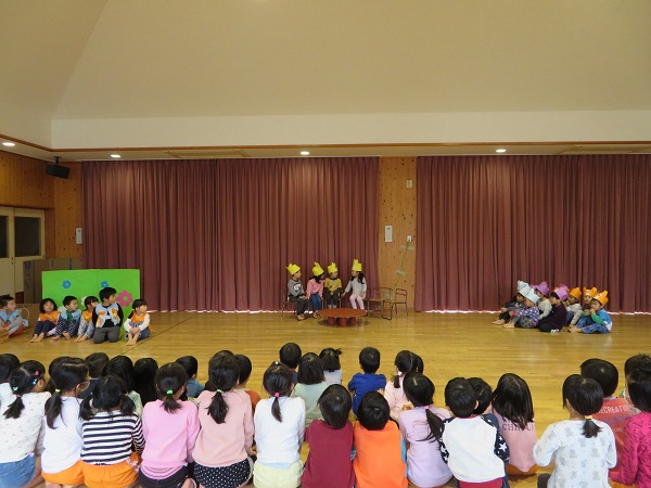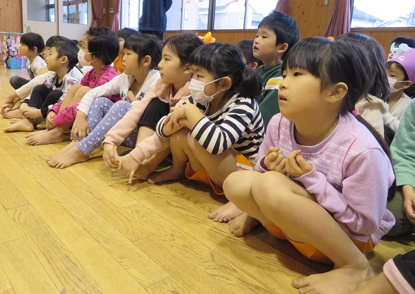 2019年02月04日 いよいよ今週!インフルエンザで休んでいたお友だちも元気になり、お楽しみ会に向けての練習もいよいよ大詰めを迎えました。今日はばす組・ひこうき組・ろけっと組の3クラスが集まって、お互いの発表を見せ合います。他クラスのお友だちに見られている緊張を味わいながら、今までの練習の成果を見てもらいました。4月から取り組んでいたことが着実に実を結んでいるろけっと組です。本番が楽しみですね♡