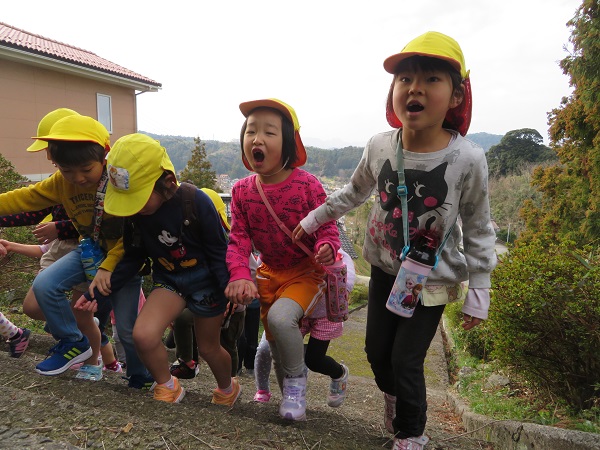 長ーい階段のある法蔵寺にいきました。前回行った時、行きと帰りの階段の数が違うというミステリーが発生!「今回はどうだろう・・・」とわくわくドキドキの子ども達、数を数えながら一歩一歩進みました。