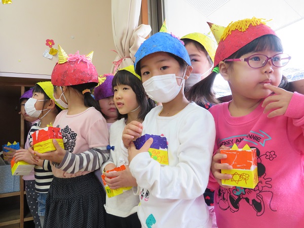 「もう小学校になったら鬼来んけえよかった~!」と無事に豆まきが終わり安堵の表情です♡