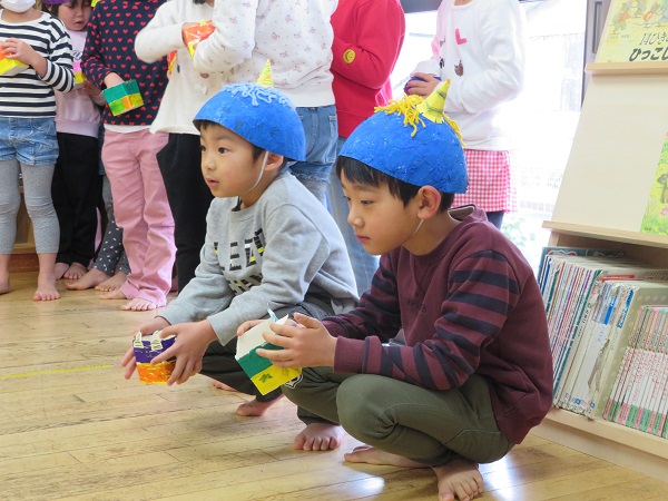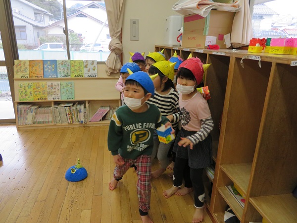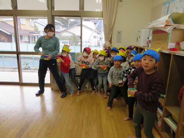 3日は節分...今日は一足お先に保育園で豆まきをしました!