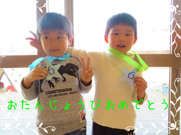 2019年02月05日 happybirthday☆延期していた1月の誕生会がありました■今日の主役はこの2人!ちょっぴり緊張しながらもはっきりとインタビューに答えてくれましたよ。みんなにお祝いしてもらいとっても楽しい時間でした♩お誕生日おめでとう♡