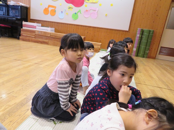 2019年02月07日 ドキドキ...!お楽しみ会まであと2日!今日は他のクラスの発表のお客さんになりました☺「どんなことするのかな?」「はやく見たいね!」自分達以外の発表をじっくり静かに見るのも大事な練習です✨とっても真剣に見ていたろけっとさん。しっかりと刺激を受けて明日の練習にも気合が入りそうです!!