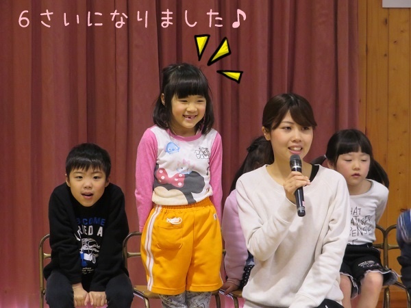 2019年02月27日 happybirthday!2月の誕生会がありました!ろけっと組からは2人のお友達が前に出て、みんなにお祝いしてもらいましたよ♡6歳のお誕生日おめでとう✨そして、「おたのしみ会の劇をもう一度やってほしい」...というリクエストにお応えして...!堂々と演じてくれた子ども達。台詞もばっちり!!時間をかけて一生懸命練習したものは、しっかり身についているものですね。2度目の発表もとっても素敵でした♡ろけっとさんありがとう☺