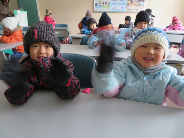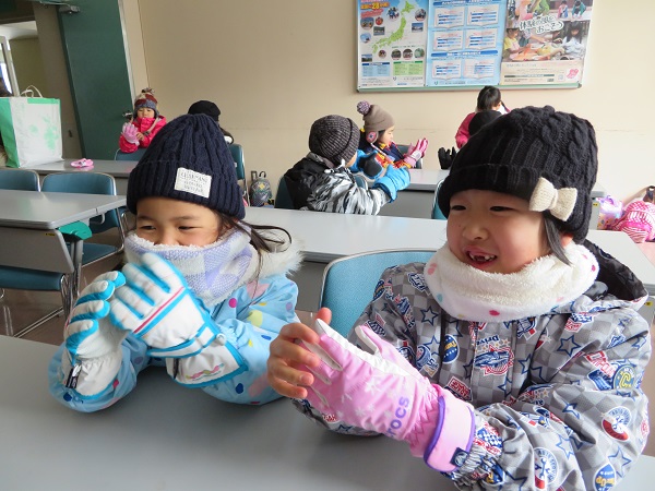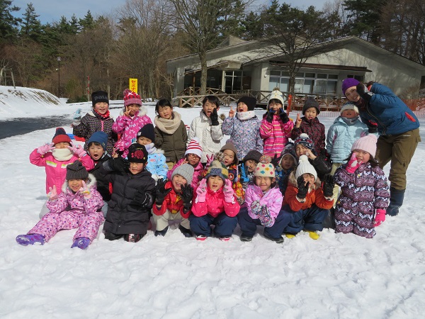 楽しみにしていた雪遊びに行きました。三瓶山に近づくと、「雪が見えてきた!!」と大喜びの子ども達。