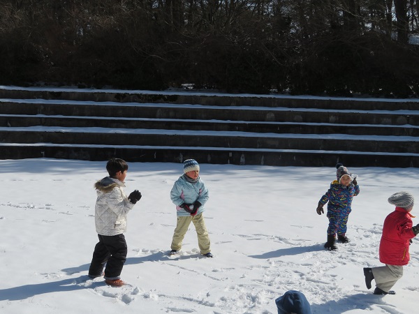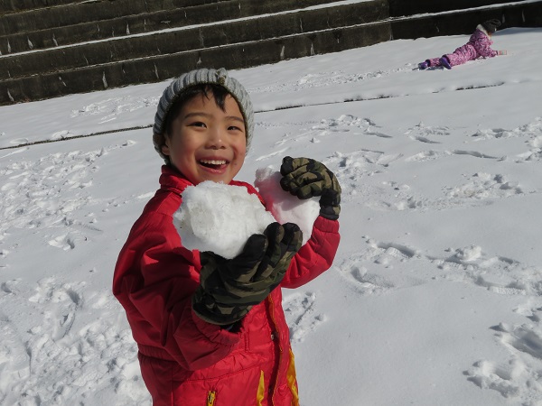雪だるまづくりや雪合戦もしましたよ。