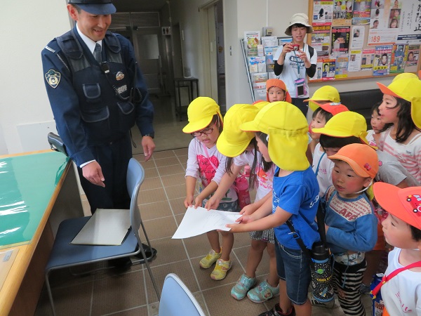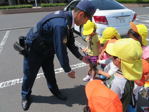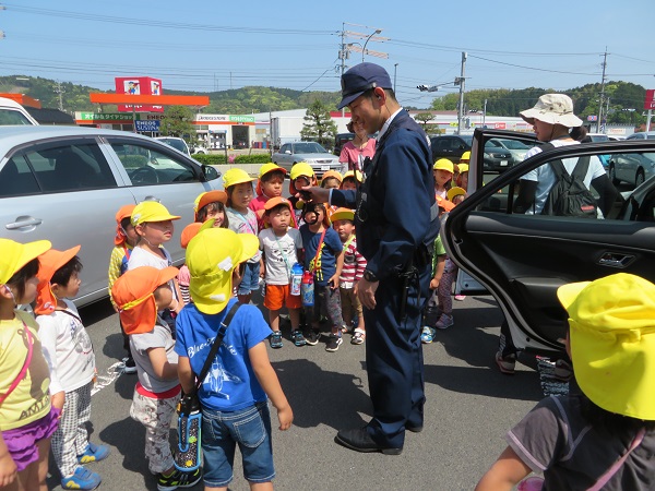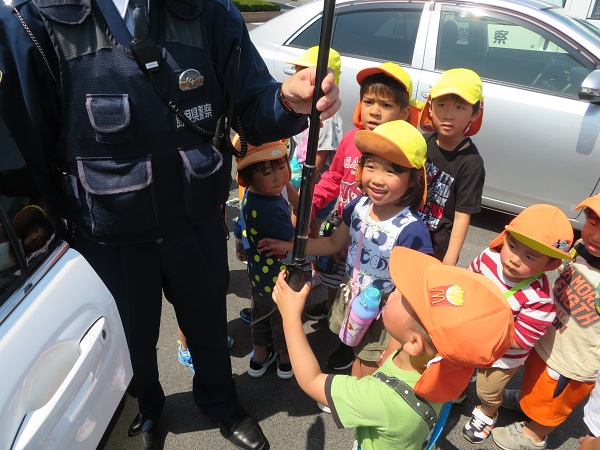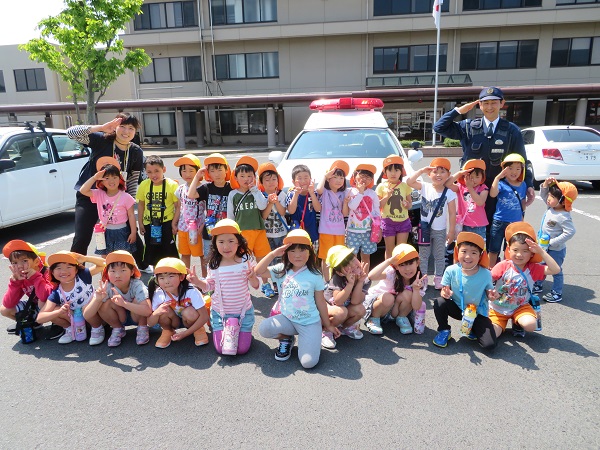 2018年05月01日 大田警察署に行きました。ばす組と5月16日の交通安全教室のお願いに行きました。みんなの憧れ警察官さん!警察官さんのお仕事についていろいろな話を聞きました。パトカーにも乗せてもらいました。ポーズもばっちりです✨