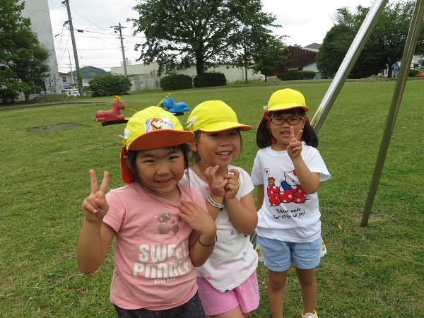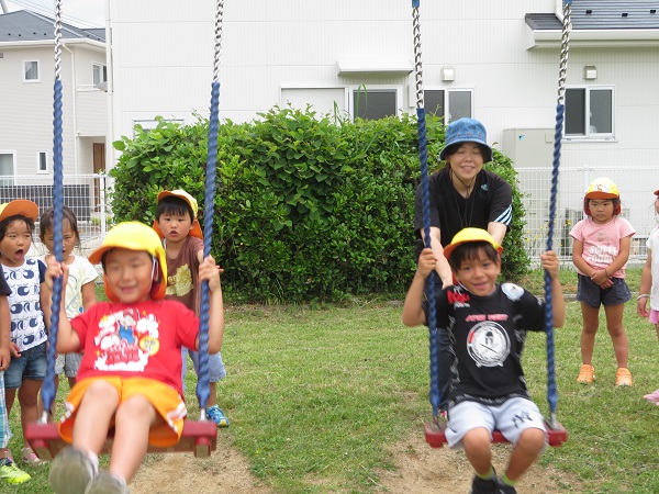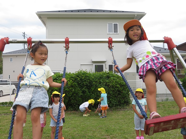 2018年05月18日 今日も元気いっぱい!!長久児童公園までお散歩に行きました。元気いっぱいのろけっと組さん。さすが年長さん。歩くのも速く、あっというまに到着♪順番を守りながらブランコをしたり、後ろからお友達に揺らしてもらって楽しみました。立ちこぎも、へっちゃらです♪すべり台をしたり、お花やピーピー豆さがしで盛り上がっていましたよ。今日もみんな元気いっぱいでした!!