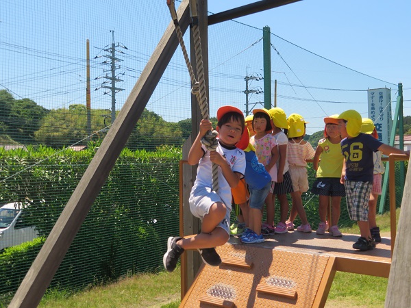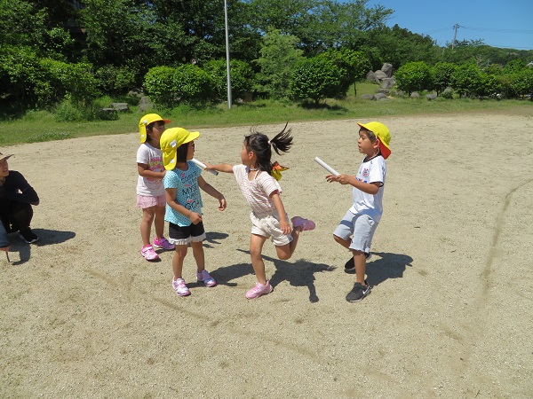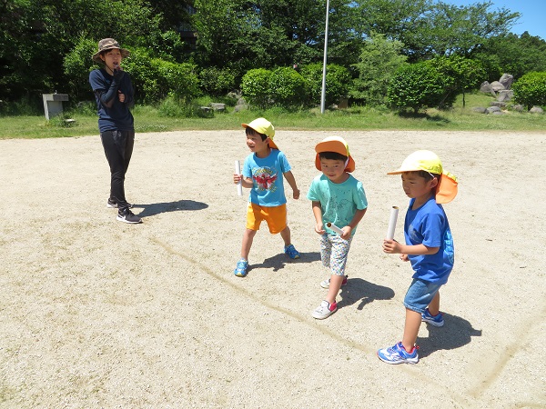 2018年05月22日 よーいどん!防犯訓練がありました。落ち着いて先生の話を聞くことができましたよ。その後は宮崎公園へお散歩にいきました♪きょうはみんなでリレーごっこ!「いちについて...よーいどん!」転んでしまったり、バトンを渡す人を間違えたり...ハプニング続きのリレーでしたがとっても楽しんでいたろけっとさんです☺遊具でもたくさん遊んで帰るころには汗びっしょりでした■またお散歩に行こうね♪