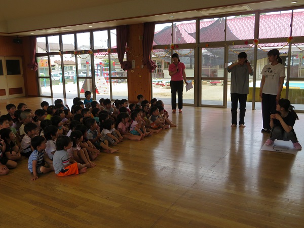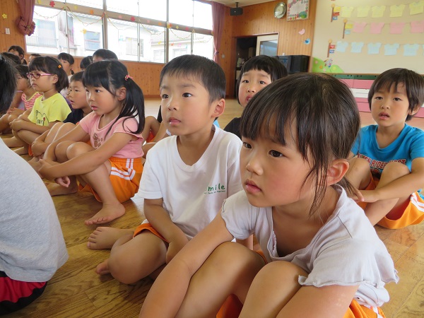 先生たちの寸劇もありとっても真剣に見ていたろけっとさんでした。
