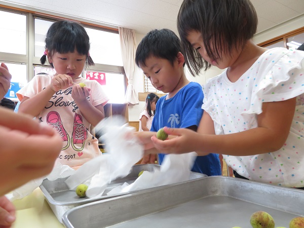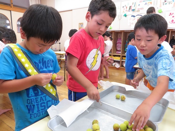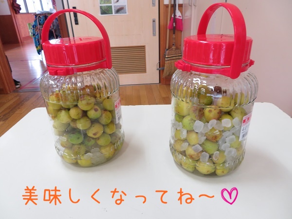 誕生会の後は、保護者さんから頂いた梅の実を使ってシロップ作り☺