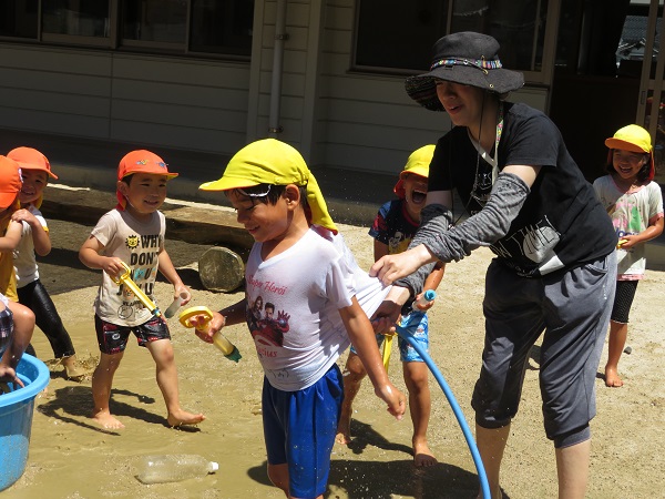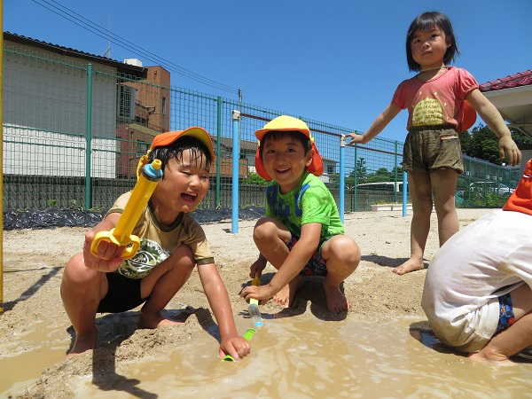 2018年06月07日 泥だらけ!今年度、初の泥んこ遊びをしました。全身泥だらけになって楽しみましたよ♡今日みたいに暑い日は水がとっても気持ちいいね!しっかり遊んだ後は給食がおいしい!空腹は最高の味付けです■明日も晴れますように☀