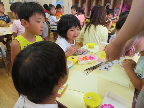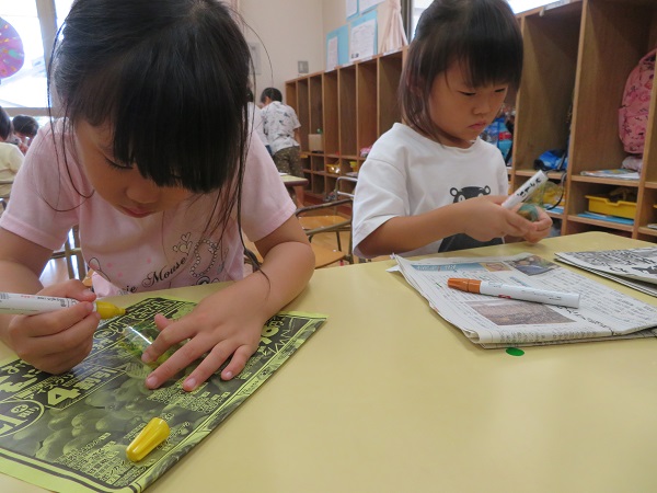 2018年08月24日 最終日!今日は一日保育士体験の最終日でした。朝から図鑑を見ながらコスモス作りの続きをしたり、ペットボトルを使ったビーズ作りをしたり...もちろんプール遊びもしましたよ!たくさんのお母さん先生やお父さん先生と遊べて大満足のろけっと組さん!楽しい一週間になりました。来ていただいた保護者の皆様ありがとうございました✨