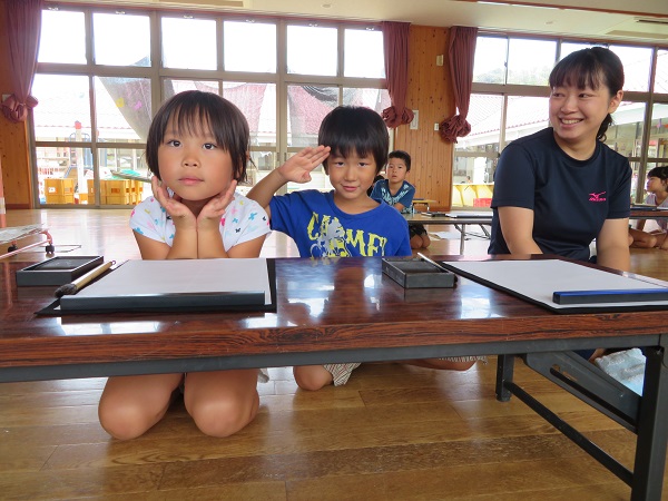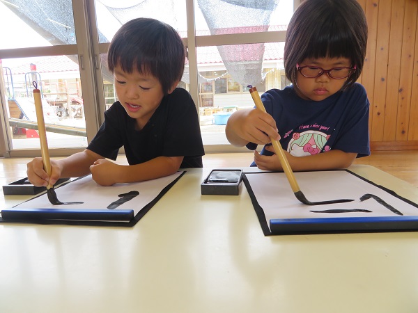 2018年08月22日 習字の日☆今回書いた文字は...「ほし」がんばるぞ✨「う~ん...曲がるところが難しいなあ...」と頭を抱えながらも、お手本を見て一生懸命書きましたよ。玄関に掲示する作品は、数枚書いた中から自分の一番のお気に入りを選びました■ぜひご覧ください☺
