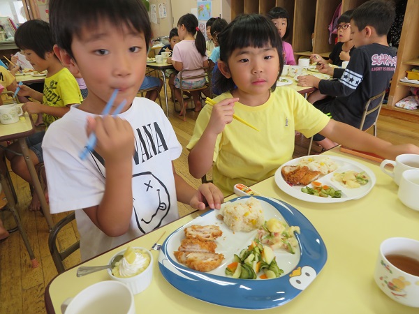 楽しんだ後は誕生会のごちそうをぱくり!