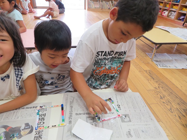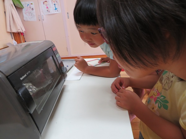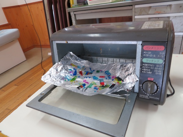 炭酸飲料のペットボトルに油性マジックで模様をつけます。それを横1センチ、縦2.5センチの大きさに切り、トースターに入れて焼くと、ビーズの完成✨