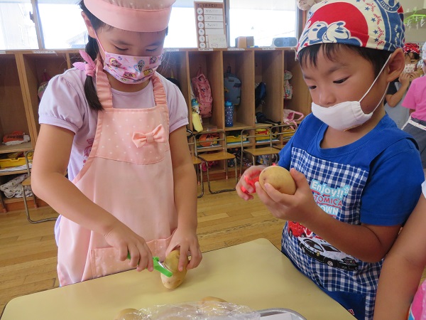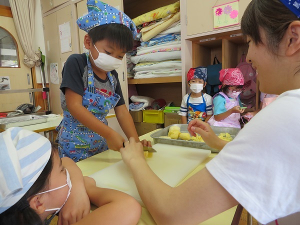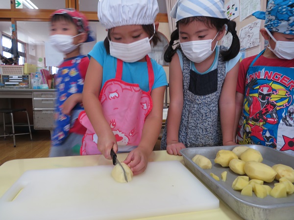 野菜を切るチームは、ネコの手で上手に包丁を使いながら切ることができました☺