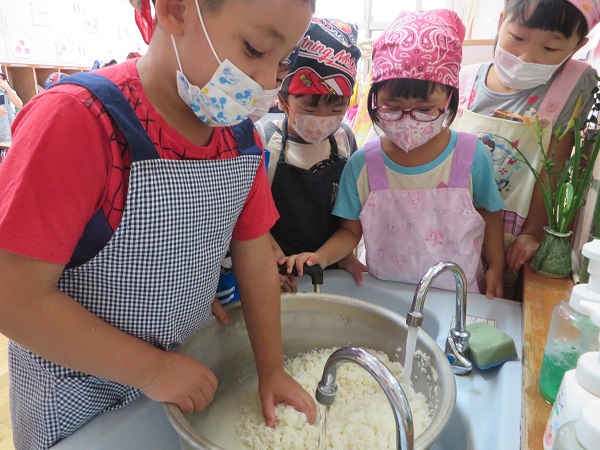 そしてお米研ぎチーム!3升もあるお米を大きなお鍋を使って一生懸命研いでくれましたよ✨
