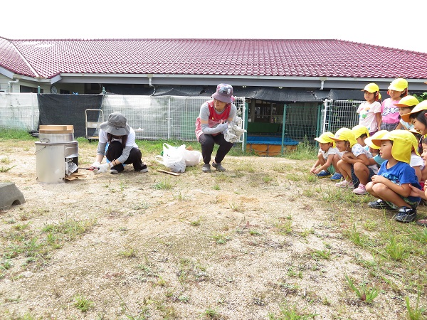 いよいよ釜戸に火をつけます...■